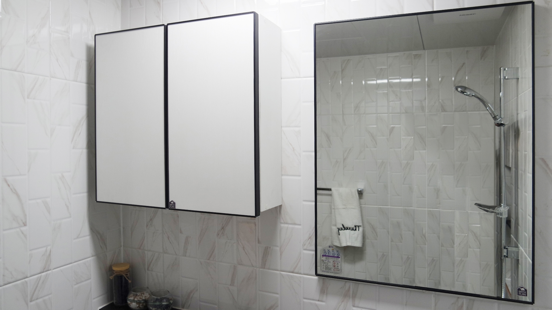 - Family bath - Cabinet: PS sliding cabinet Slide bar : DL-S4101 Toilet paper hanger : DL-9703 Towel closet : DL-A9012 - Master bath - Top Cabinet : Black Swan(Bathplan) Bottom Cabinets : Mono Chloe(Bathplan) Slide bar : DL-S4102 Toilet paper hanger : DL-A9070 Towel rack : DL-A5300 Bath hanger : N-0502 |